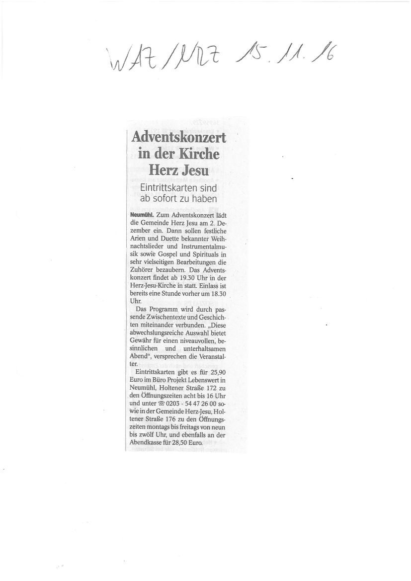Gospel Konzert im Agnes Heim – NRZ WAZ – 11.11.2011