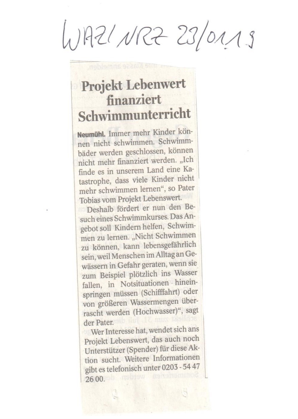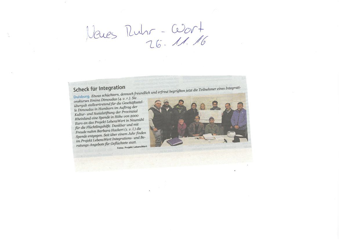 Rekordspende für das Projekt Lebenswert von Pater Tobias – Hamborner Nachrichten – 12.12.2011