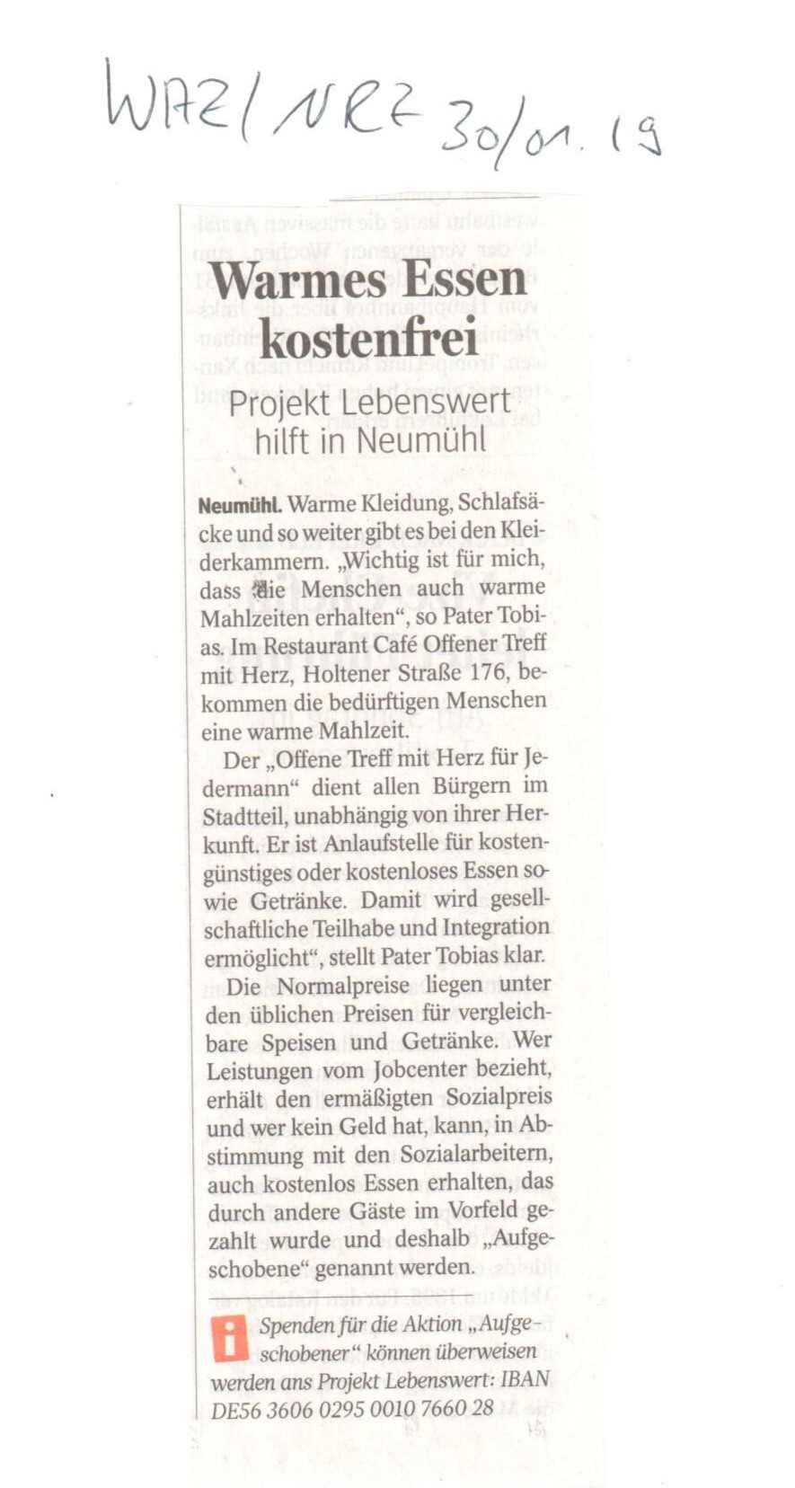 Pater Tobias sammelte Spenden – NRZ WAZ – 15.02.2012
